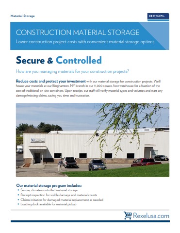 Reduce costs and protect your investment with our material storage for construction projects. We’ll house your materials at our Binghamton, NY branch in our 11,000-square-foot warehouse for a fraction of the cost of traditional on-site containers. Upon receipt, our staff will verify material types and volumes and start any damage/missing claims, saving you time and frustration.