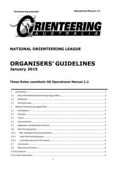Orienteering Australia Operational Manual 2.2 1 NATIONAL ORIENTEERING LEAGUE ORGANISERS’ GUIDELINES January 2015 These Rules constitute OA Operational Manual 2.2
