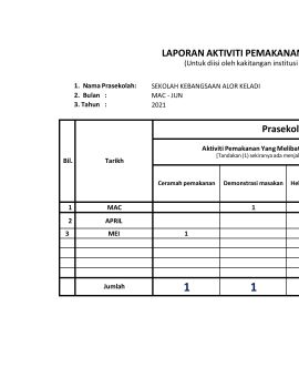 Pelaporan aktiviti pemakanan Sk Alor Keladi