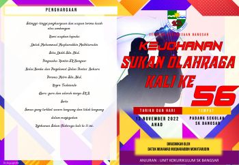 BUKU PROGRAM KEJOHANAN SUKAN OLAHRAGA SK BANGSAR KALI KE 56