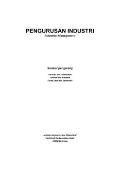 Pengurusan Industri ini adalah merupakan buku yang menerangkan kaedah-kaedah yang berkesan di dalam industri. Penulisan buku ini adalah bertujuan untuk satu sumber rujukan kepada pelajar yang mengambil kursus pengurusan industri , industrial management dan kawalan kualiti