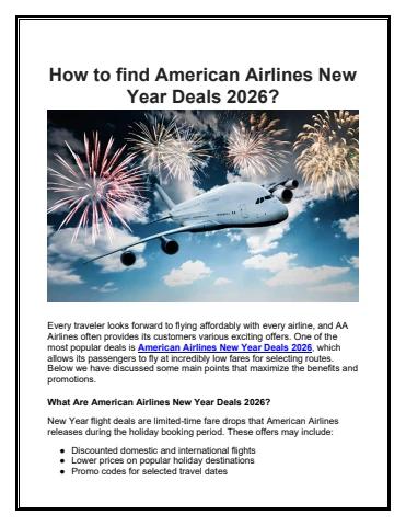 One of the most popular deals is American Airlines New Year Deals 2026, which allows its passengers to fly at incredibly low fares for selecting routes. Below we have discussed some main points that maximize the benefits and promotions. Read More: https://mikoflight.com/blog/american-airlines-new-year-deals.php