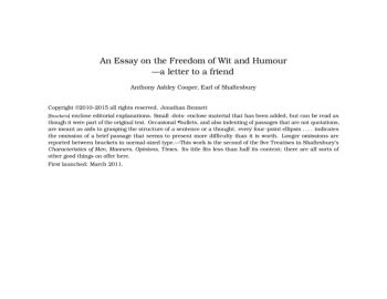 An Essay on the Freedom of Wit and Humour —a letter to a ...
