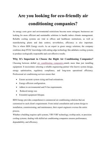 Discover energy-efficient air conditioning solutions designed for modern businesses. BDS Energy combines advanced HVAC expertise with innovative adiabatic cooling systems to reduce costs, improve performance, and support long-term sustainability and regulatory compliance.