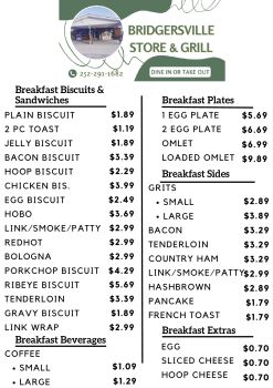 Bridgersville Menu