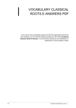 Read and Download Ebook Vocabulary Classical Roots E Answers PDF at Our Huge Library. 3/13 Vocabulary Classical Roots E Answers. If you need to look for ...