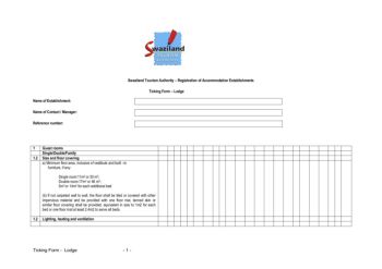 Ticking Form - Lodge - 1 - Swaziland Tourism Authority – Registration of Accommodation Establishments Ticking Form – Lodge Name of Establishment: