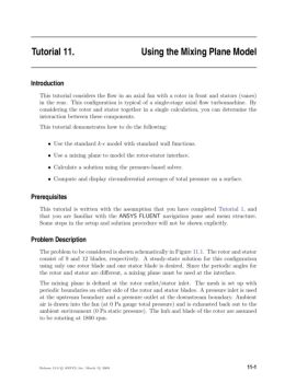 Tutorial 11. Using the Mixing Plane Model Introduction This tutorial considers the flow in an axial fan with a rotor in front and stators (vanes)