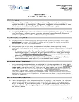 Building Safety Department 400-2nd Street South St. Cloud, MN 56301 (320) 255-7239 Page 1 of 6 Revised: 8/8/12 (KV) FIRESTOPPING . BUILDING CODE INFORMATION
