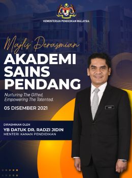 Buku Program Perasmian Akademi Sains Pendang pada 5 Disember 2021, Hari Ahad.