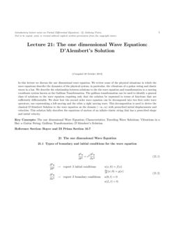 Lecture 21: The one dimensional Wave Equation: D’Alembert ...