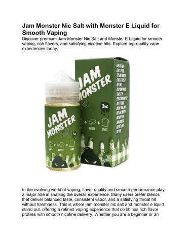 Discover premium Jam Monster Nic Salt and Monster E Liquid for smooth vaping, rich flavors, and satisfying nicotine hits. Explore top-quality vape experiences today.