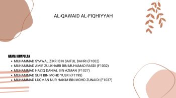 NAMA KUMPULAN MUHAMMAD SYAWAL ZIKRI BIN SAIFUL BAHRI (F1002) MUHAMMAD AMIR ZULKHAIRI BIN MUHAMAD RASDI (F1032) MUHAMMAD HAZIQ DANIAL BIN AZMAN (F1027) MUHAMMAD SUFI BIN MOHD YUSRI (F1195) MUHAMMAD LUQMAN NUR H (3)