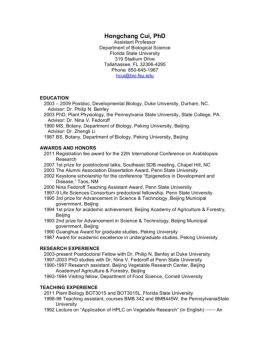 Hongchang Cui, PhD Assistant Professor Department of Biological Science Florida State University 319 Stadium Drive Tallahassee, FL 32306-4295