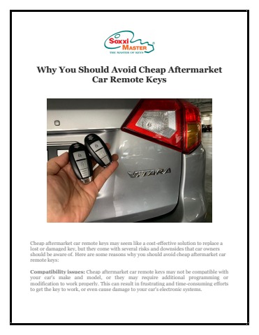 Cheap aftermarket car remote keys may seem like a cost-effective solution to replace a lost or damaged key, but they come with several risks and downsides that car owners should be aware of. Here are some reasons why you should avoid cheap aftermarket car remote keys: