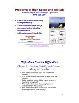 Implications of Air Compressibility for Stability and Control" •! Early difficulties with compressibility "–!Encountered in high-speed dives from