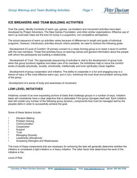 Group Warmup and Team Building Activities Page 2 Courtesy of Peter Davison Seminars Write: