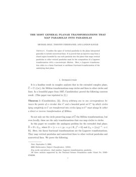 THE MOST GENERAL PLANAR TRANSFORMATIONS THAT MAP PARABOLAS ...