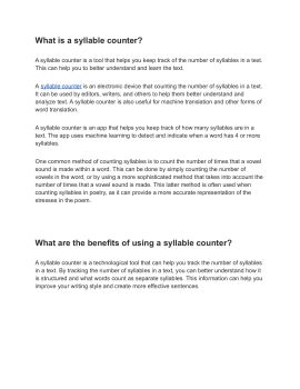 A syllable counter is a tool that helps you keep track of the number of syllables in a text. This can help you to better understand and learn the text.
