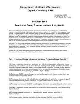 Massachusetts Institute of Technology Organic Chemistry 5.511 September, 2007 Prof. Rick L. Danheiser Problem Set 1 Functional Group Transformations Study Guide