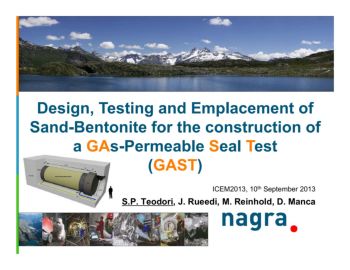23.01.2014 Design, Testing and Emplacement of Sand-Bentonite for the construction of a GAs-Permeable Seal Test (GAST) ICEM2013, 10th September 2013