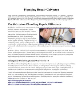Information on the various plumbing repair services that are offered in Galveston TX.