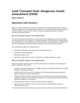 Land Transport Rule: Dangerous Goods Amendment [2009]