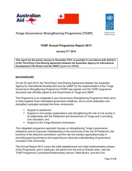 Page 1 of 6 Tonga Governance Strengthening Programme [TGSP] TGSP Annual Programme Report 2013 January 31st 2014 This report for the period January to December 2103 ...