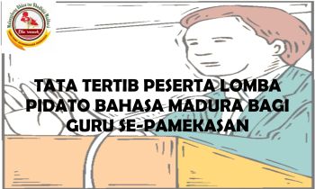 Peserta adalah guru yang bertugas di wilayah kabupaten Pamekasan. Durasi PENAMPILAN pidato minimal 5 menit dan maksimal 7 menit dengan didahului menyebutkan nama diri, Tema lomba pidato adalah: Malangghèng Kabhudâjân Madhurâ