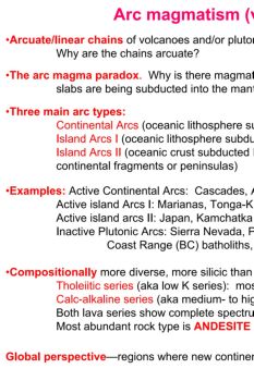 Arc magmatism (volcanic/plutonic) Global perspective—regions where new continental crust is generated •Arcuate/linear chains of volcanoes and/or plutons developed ...