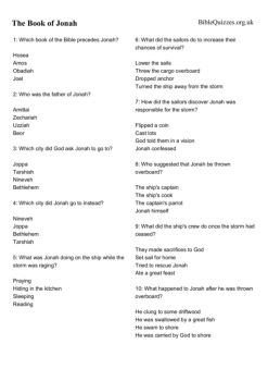 The Book of Jonah - Bible Quizzes & Puzzles