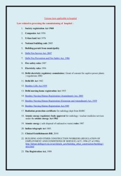 Various laws applicable to hospital Law related to governing the commissioning of hospital : 1. Society registration Act 1960 2. Companies Act 1956
