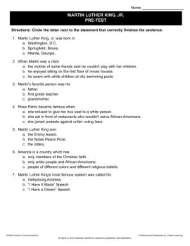 MARTIN LUTHER KING, JR. PRE-TEST - unitedstreaming.com