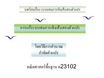 การแก้ระบบสมการเชิงเส้นสองตัวแปร โดยกำจัดตัวแปร