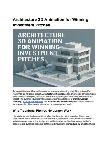 Architecture 3D Animation for Winning Investment Pitches