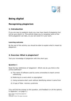 Being digital: Recognising plagiarism Page 5 of 6 Copyright © 2012 The Open University Question 2 Read the statements below and select the ones you think are examples of