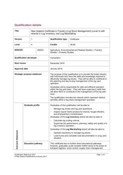 Qualification Reference 2333 Page 1 of 4 © New Zealand Qualifications Authority 2015 Qualification details Title New Zealand Certificate in Forestry (Log Stock ...