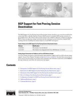 BGP Support for Fast Peering Session Deactivation How to Configure Fast Peering Session Deactivation 3 Cisco IOS Release 12..0(29)S and 12.3(14)T