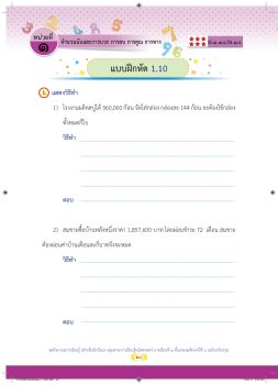 แบบฝึกหัดประกอบการสอน ใบงาน 1.10 เรื่อง โจทย์ปัญหาการหาร