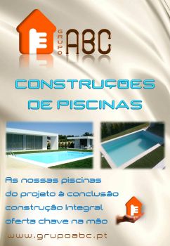 Construção integral de piscinas em alvenaria/betão, revestidas com membrana sintética "PVC", incluindo bordadura e equipamentos.