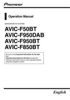 Pioneer AVIC-F50BT, AVIC-F950DAB, AVIC-F950BT, AVIC-F850BT EN