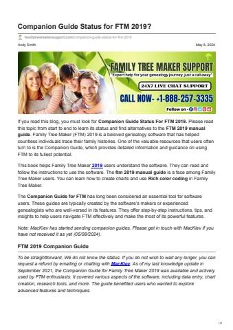 The Companion Guide Status for Family Tree Maker 2019 helps users understand the availability, updates, and latest features of the official FTM guide. It ensures you have the most accurate instructions for navigating tools, charts, syncing, and troubleshooting. Keeping track of the guide status helps improve your genealogy workflow and enhances your overall Family Tree Maker experience. For expert help or questions about the Companion Guide for FTM 2019, call +1-888-257-3335.