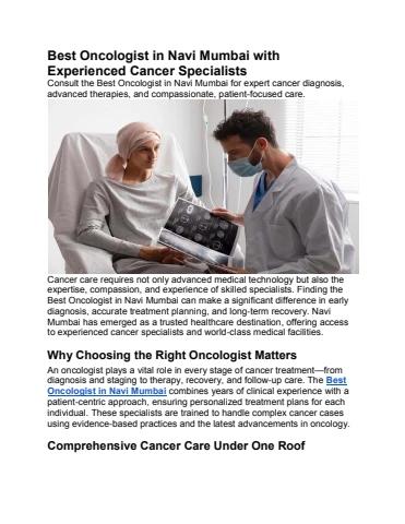 Consult the Best Oncologist in Navi Mumbai for expert cancer diagnosis, advanced therapies, and compassionate, patient-focused care.