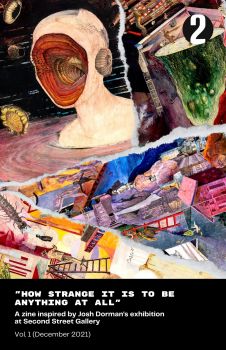 In October / November 2021, Second Street Gallery invited community members of all ages to participate in a call for writing submissions inspired by the artwork in Josh Dorman’s exhibition, how strange it is to be anything at all (October 1 - November 19, 2021). Artist Josh Dorman sources collage elements for his mixed-media paintings from antique diagrams, engravings, maps, textbooks and documents that were published prior to the widespread use of photography. Using a variety of mediums and techniques, he recontextualizes antique imagery to create multi-layered and fantastical visual narratives that explore mythical landscapes and notions of collapsed time and dream states.