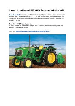 John deere 5105 Tractor is a 40 HP Tractor made with great precision to rule in Inan fields. It comes with a powerful engine of 3067 CC to give you a superior driving experience. John deere 5105 is filled with power-packed performance and designed carefully to fulfil all the needs of a farmer. Visit Here: https://tractorgyan.com/tractor/john-deere-5105/377