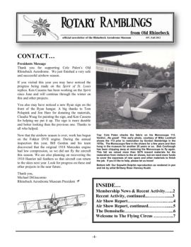-3- Over the summer, Mike and Dave Lockhart delivered the last known remaining pieces of Cole Palen’s Aeromarine 39B from - Florida (see Rotary Ramblings Summer ...