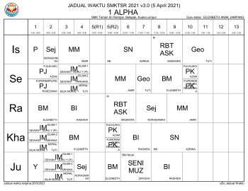 SMK TAMAN SERI RAMPAI. JADUAL WAKTU KELAS V3 2021