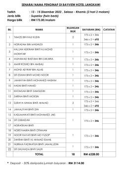 SENARAI NAMA PENGINAP DI BAYVIEW HOTEL LANGKAWI