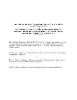 COURSE TITLE: The Law Relating to the Practice of Practical Nursing (Nurse Practice Act) and The Administrative Rules and Minimum Requirements Relating to