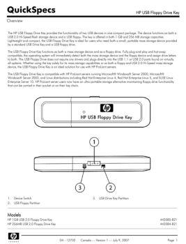 Option Kit Contents HP USB Floppy Drive Key Documentation Standard Features Performance The HP USB Floppy Drive Key has a storage capacity of up to 1 GB and is a USB ...